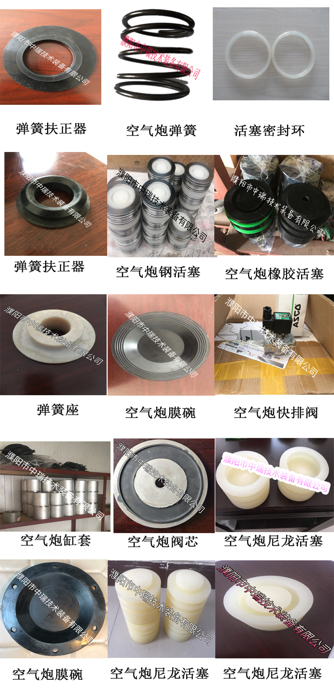 空气炮配件主要是针对空气炮易损件,空气炮易损件主要有空气炮缸套(空气炮缸筒)、空气炮活塞、空气炮活塞环、空气炮弹簧扶正器(空气炮弹簧座)、空气炮弹簧、空气炮